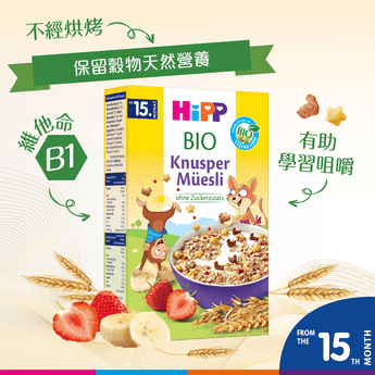 HiPP喜寶有機穀物片以精選有機穀物製成,是寶寶理想早餐的選擇。